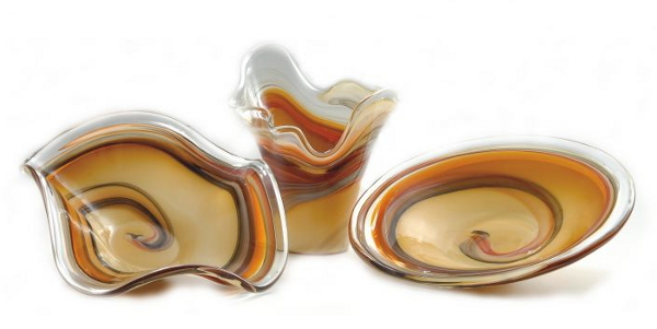 As cores vivas e os contornos disformes simbolozam toda a modernidade e vanguarda em peças decorativas de vidro tipo Murano.